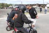 Burned rubber, alcohol fuel and nitromethane are not odors you would expect to smell on the waterfront property of the , but on Sunday, dozens of grown men gathered to pull burnouts and race down a mini dragstrip on their altered mini bikes to support their local car club.