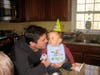 Then he started eating real food, like bananas and peaches and carrots and peas. First we spoon-fed him. Now he grabs food by the handful and shoves it in his mouth. He's done with bottles. He drinks real milk from a cup.