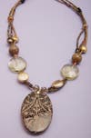 Lark Roderigues open studio featuring her handmade and sculptured pottery and glass beaded jewelry, for gifts and collecting.