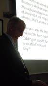 The local historian continued, talking about Coddington who moved further south to Newport where there was a natural harbor.
