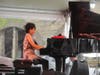 Pianist Hiromi and her band Trio Project excited the crowd at the Quad Stage with an electrifying performance after a half hour wait to dry off band equipment. Through the frustration of many concert-goers wondering how they would make it through the rest of the day, some with busted umbrellas, Hiromi, wearing bright red sneakers and her musing smile, fired up her band and brought a captivated Jazz Fest Founder George Wein to the stage.