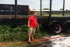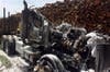 The fire had begun to extend to an adjacent logging trailer when responders began to attack the blaze.