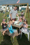 The barbecue was beginning so I sat with a lovely family, the Clarks from Massachusetts. Melissa Clark was gracious in lending me a plate for my hamburger and assorted pasta salads and lots of wonderful things. This is the first time that the Clarks stayed at the campground and they are are already calling it home.