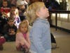 After the reading, Narragansett High School sophomores Abby Ceresi, Hannah Ragozzino and Zach Zuchowski put on an entertaining puppet show for the crowd.