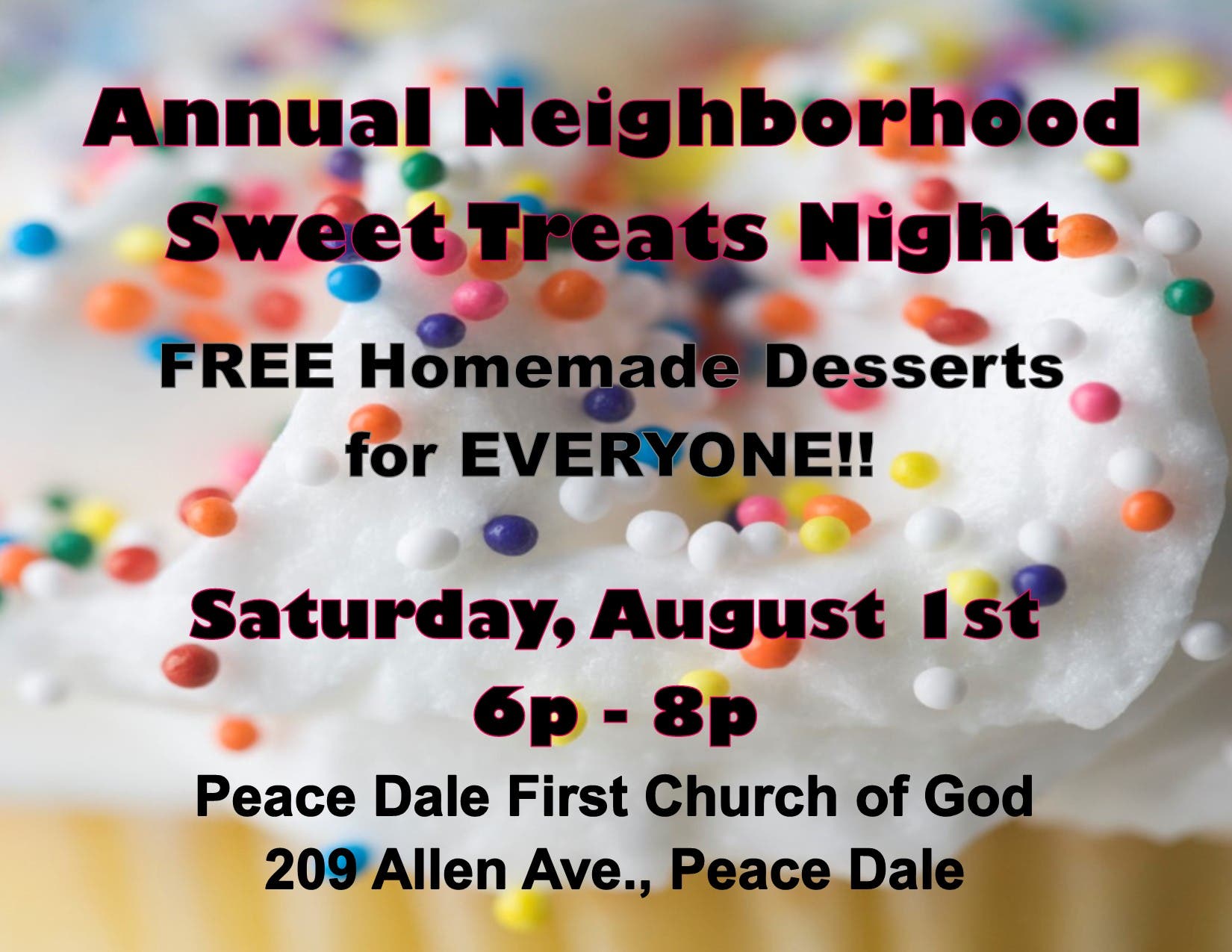 Everyone in our community is invited to a FREE dessert night. It is sure to fill that sweet tooth craving for some good homemade dessert!
