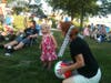 Dozens of families picnicked on the parks grassy hill as tow-headed toddlers frolicked, danced and delighted in the music of the Toe Jam Puppet Band.