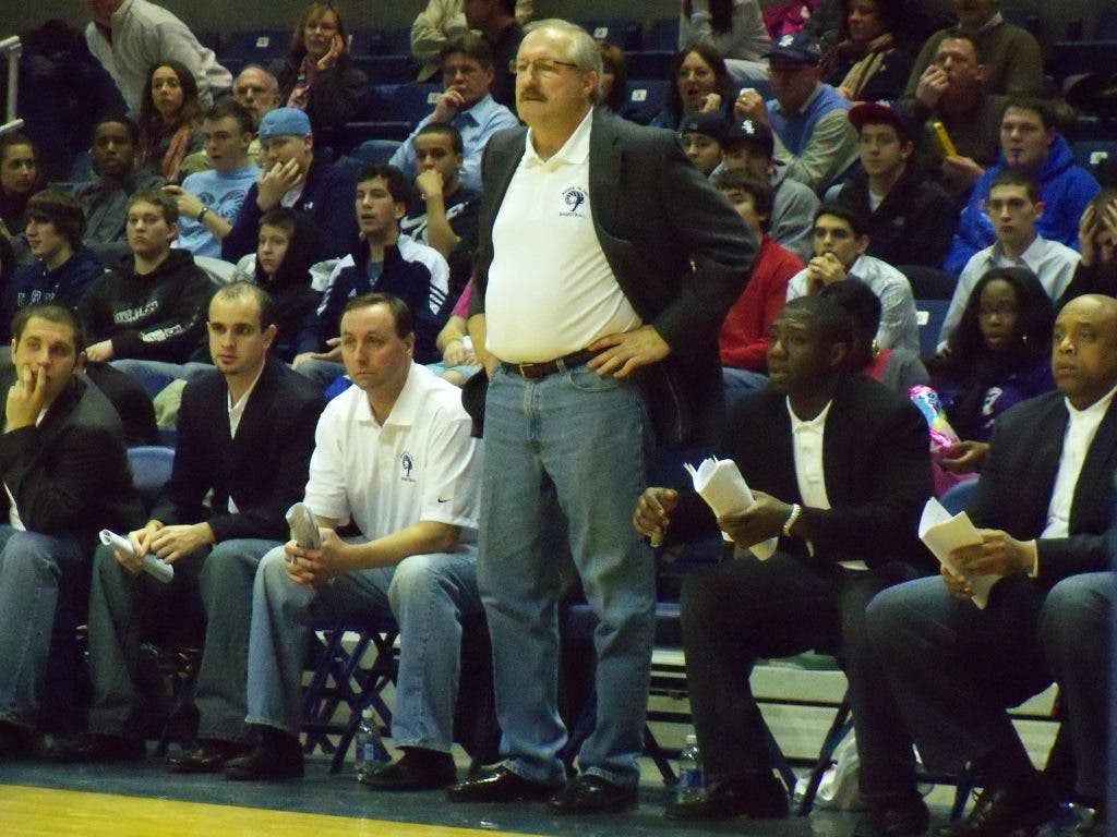 This was not a fashion statement, but rather done to honor the memory of Dave LaProva. LaProva, who passed away suddenly on October 4, 2009 of a heart attack, worked in operations at the Ryan Center.