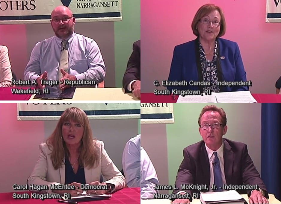 Special thanks to all the candidates for attending the forum, the League of Women Voters for organizing the forum, PEG-RI for offering their studio space on short notice, the South County Independent for collaborating on gathering questions and the voters of District 33 for paying attention!