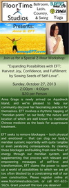 Anna's first 2-hour EFT workshop here at FloorTime Studios will focus on building the kind of confidence and unconditional self-love that empowers us to broaden our horizons, try new and wonderful experiences that we might otherwise have considered beyond our grasp, and dare to visualize the fulfillment of our greatest dreams.Â