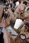 Uncle Thirsty's Cups, a duo from Providence, featured wheel-thrown porcelain cups and vases. They're fired at a high temperature to make the cups usable and dishwasher safe. Almost anything with color found on the mugs and vases is a vintage decal they order from the Midwest and transfer them on top of the ironed-on images on the mugs. The process can best be described to non-artistic folk as "applying a press-on tattoo." Their work is for sale at the RISD Gallery, as well as Queen of Hearts, soon to be expanding with Modern Love, both in Providence.