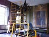 Paint analysis, a scientific study of the wall’s paint used to determine the 18th and early 19th century colors, was performed by John Vaughn of Architectural Conservation Services. Mr. Vaughn’s work informed a team comprised of staff members from the Newport Historical Society and the State’s Historic Preservation and Heritage Commission who will determine the scheme for painting this spring. Colors are being examined for the Council Chamber’s 1784 and 1812 appearance. In the Chamber of Deputies, Mr. Vaughn determined colors for the 1841/1842 appearance which reflects the courtroom’s early Victorian design, and for the polychrome paint campaign that was applied in 1854.