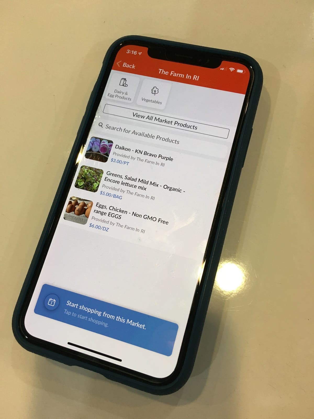 To use the service, customers download the app and create a profile. They then have the opportunity to browse through local purveyors and select from a variety of produce, proteins, beverages, prepared foods, and more.