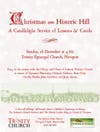 Festive carols sung by candlelight will alternate with lessons retelling the story of salvation from Adam's fall to the coming of the Messiah. All are invited to join us as we anticipate with great joy the celebration of Christmas.