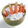 Another bite that's ready in minutes. Â Stand baby carrots up in a bowl of veggie dip. Â Use a little dip to "glue" almond sliver finger tips to the ends. Â Thinly cut slivers of apple can be substituted for almonds to make this a nut-free snack.