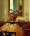 Frederick A. Cushing, grandson of the well-respected American painter Howard Gardiner Cushing, loaned "Ethel in Kimono" (c. 1909) to the exhibit, Ethel being the painter's wife.