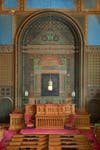 The bulk of La Farge’s original program survives in various states of preservation. Most significant, the highly elaborated mural design of the wall behind the reading desk and the detail applied to ceiling panels, remain essentially unchanged. Original solid olive encaustic paint along the galleries and organ loft lies beneath areas of blue mid-20th-century overpaint and most of La Farge’s windows—important examples of the emergent technique of opalescent architectural glass—survive along the north and south elevations. The building is an imposing presence within the Newport National Historic District, a densely settled, predominantly residential 17th- 18th- and 19th-century neighborhood overlooking Thames Street and Newport Harbor.