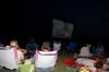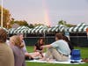 The event was originally scheduled for Friday, July 23, but got postponed due to rain. Sunday was another drizzly evening, but the skies cleared just in time for the film, leaving a rainbow in the sky. Donahue thanked those who turned out for "having faith" in their effort, and the weather.