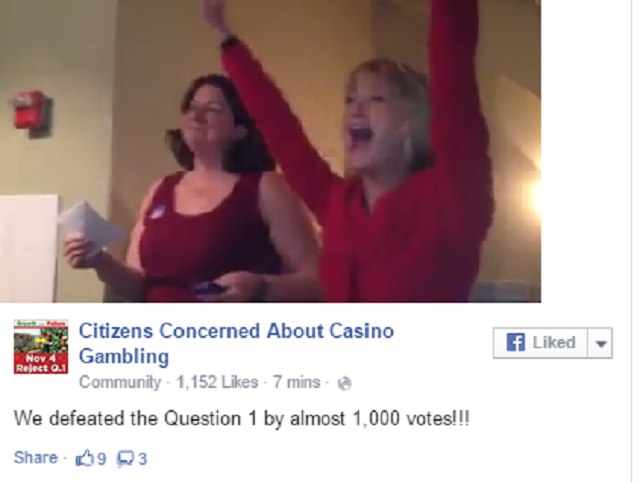 More than 600 mail ballots have yet to be counted, which isn’t enough to change the results. As a result, supporters of the anti-casino movement celebrated soon after polls closed at 8 p.m.. Watch the video below.