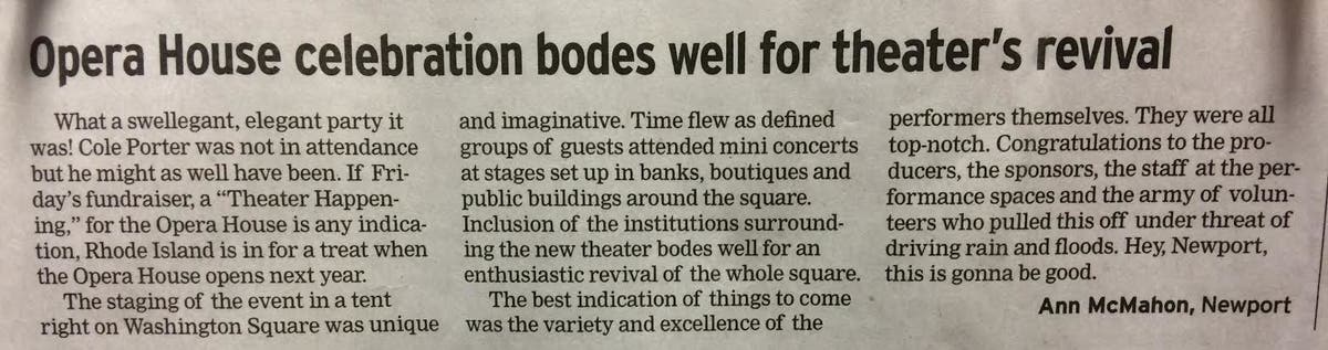 What a swellegant, elegant party it was! Newport Opera House Theater & Performing Arts Center Celebration Bodes Well for Theater's Revival