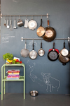 You can tell a lot by someone’s kitchen. By the way things are organized (or not), by what’s on the counters and most importantly by what’s in the oven! As the clunkiest most cumbersome bunch of kitchen accessories, pots and pans have a sneaky way of becoming a totally chaotic mess when it comes to storing them. They often get jammed into some cabinet and their lids somehow get lost. However, with overhead storage racks, pots and pans can not only stay organized but can also become a focal point of decor in the kitchen.  We love the look of a clean kitchen and urge you to install a unique storage system for your pots and pans!