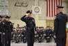 The ceremony is steeped in tradition, from the performance by Bagpiper Trooper Michael J. Capone of the Rhode Island State Police leading the recruits to their seats, the invocation by Rev. Francis O'Hara, academy chaplain, to a lengthy inspection process during which the recruits march back and forth and stand achingly still as they're inspected from head to toe, some ordered to shout their weapon make, model number and serial number.