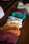 Garshana Gloves made with raw silk and are used to exfoliate skin, encourage new cell growth, increase blood flow, stimulates the lymph system of toxins and breaks down stagnant cellulite. Yoga Straps made with vintage embroidered ribbon. Yoga bags(zipper & draw string) made with reused, recycled material