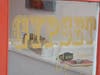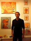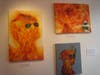Although quite small, the space is vibrant and fosters an intimate and convivial atmosphere; the brightly painted red floor invokes a casual chicness well suited to the current installment. The pieces by POIS and Small were born through very different inspirations, styles, and mediums; however, they harmonize well in this particular space. Miles' oil-on-canvas pieces are ablaze with hues of red and orange wisping and twisting to shape hazy forms with affecting, bespectacled eyes. In contrast, notorious POIS tags up various mediums, including street signs, which exemplify street art.Â