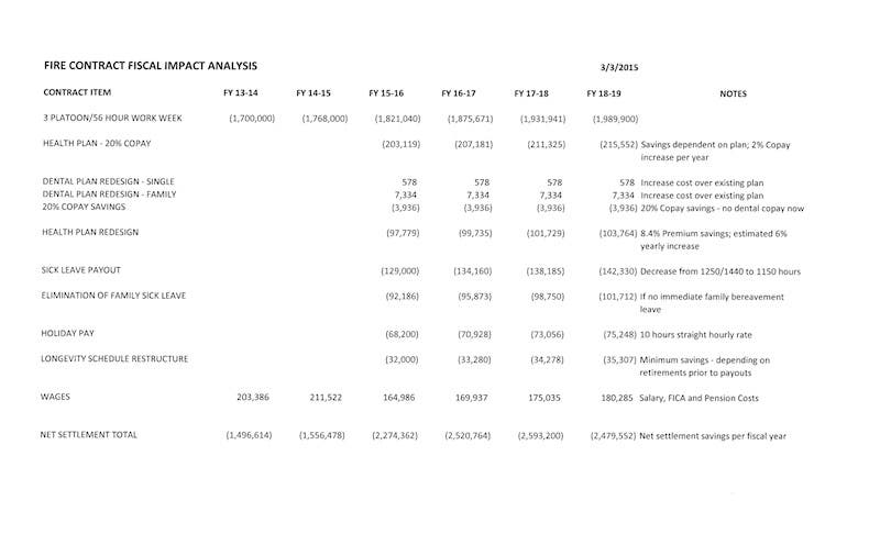 The salary increases, on the other hand, would only increase the annual fire budget by about $175,000 per year on average thanks to the concessions in benefits and other cost savings.