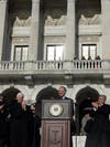 Chafee, Rhode Island's first Independent governor, urged his fellow state office-holders to join him in preserving and expanding on Roger Williams' vision and work toward establishing a civil government that will work to pull Rhode Island out of the difficult financial times.