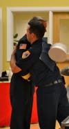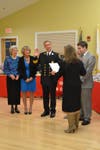 Gardiner stood by with his family as Town Council President Elizabeth Dolan swore him in. Fellow North Kingstown firefighters stood in line to greet their newly-appointed chief following official swearing in.