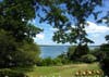 This waterfront country estate sits on three acres of land right on Narragansett Bay and offers gorgeous views of the Jamestown Bridge right from the yard. You even have your own beach and deep water dock.