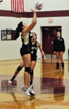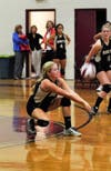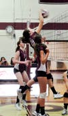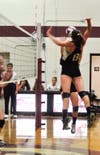 They regrouped when junior outside hitter Brooke Sullivan spiked the ball to regain serve. Polom then returned the favor by breaking the serve of Prout senior Becky Rogers with a kill threaded through the middle. A nice block by Jenna Walsh kept the score tied at 13.