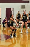 North Kingstown senior Michaela Polom got the team off to a quick start, serving four straight points. The Crusaders battled back to 6-5 before junior Riley Martin was called for touching the net.