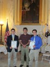 NKHS seniors Graham Sutherland and Jonathan Persia received citations from Gov. Lincoln Chafee and House Majority Leader Nicholas Mattielo and were also given their scholarhips, becoming the first NKHS students to receive the gold medal award. The students were accompanied by their coach Chris Fronce - a teacher at NKHS. (Co-coach Thomas Doran was not able to attend.)