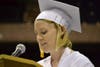Valedictorian Elena Suglia gave an upbeat and spirited speech, recounting how the Class of 2011 survived "Bieber Fever," learned a new definition of winning from Charlie Sheen and saw the pain and suffering from natural disasters across the world.