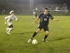 The boys' soccer rivals countered each otherss moves throughout the game.