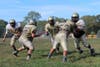 Photo Captions: The Skippers football players overcame heat, dust and dragonflies Tuesday when they hit the practice field with Head Coach Joe Gilmartin and Assistant Coach Bill Piva.