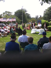 The Portsmouth Garden Club's Blue Star Memorial Ceremony, unveiling the new Blue Star Memorial sign at Portsmouth library, was held on Saturday with many veteran's and local veteran's groups in attendance. This project took the Garden Club over a year to complete and included donations from many local Veteran's groups and individuals. The Blue Star Memorial sign is the first such sign to be installed in a Rhode Island town and honors the sacrifices of our veterans of all war. It was undertaken by Garden Club member Carolyn Evans Carberry, who told the assembled group on Saturday that this "was the best project that she had ever worked on."