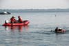 Marine 1 (19 ft Boston Whaler) and Marine 3 (12 ft inflatable) practiced victim recoveries and man overboard evolutions. Crews launched the marine units from McCorrie Beach; a common starting point for many marine operations.