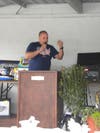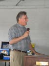 Leonard Katzman, chairman of the Portsmouth Democratic Town Committee and candidate for Town Council, spoke to the crowd about the urgency of getting more Democrats on the Town Council.