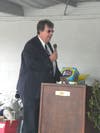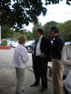 Katzman introduced the candidates, starting with the school committee. "David Croston, Andrew Kelley, Marge Levesque, and John McDaid," he said, as the group stood waving to the spectators. "For town council, Michael Buddemeyer, Dennis Canario, Terry Cortvriend, Al Honnen, Jeff Lewis, Jim Seveney, and Leonard Katzman." Â