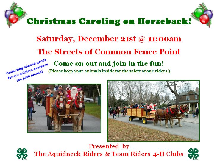 We will be caroling down the streets of Common Fence Point this Saturday, December 21st starting around 11am.