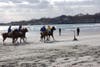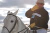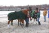With close to one hundred spectators, Second Beach gave a glimpse of the summer season to come. The sun was shining, the waves were pounding and folks were seated along the makeshift polo field in their folding chairs with cameras and drinks (0f the warm variety) in hand. The biggest difference from summer polo, of course, was the thermostat reading 38 degrees and the wind clocking in at 45 miles per hour.