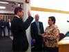 7:12 — Council votes 6-0 to appoint Helfand as tax assessor. Keith Hamilton is away on business. Council votes 6-0 to appoint Cranson as fire chief. The audience errupts in applause after each are sworn into office.Â