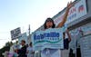 Nearly every five minutes, a vehicle's horn could be heard among the cheers of organizers, who hailed from five communities: Bristol, Portsmouth, Tiverton, Newport and Middletown.