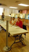 Lines of voters quickly formed to enter the polling site at Town Hall. Parking spaces were sparse at the Aquidneck Island Christian Academy as police directed traffic in and out of the school's parking lot.