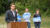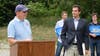 The first stop was at the Wind Turbine Generator outside Portsmouth High School, where Segal spoke with a handful of reporters about jobs and future "green" opportunities.