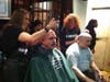 As part of the fundraiser, the team had their heads shaved (and one face) at a special St. Baldrick's event on Wednesday night at McFadden's Restaurant. Featured above are photos and a video from the event.Â
