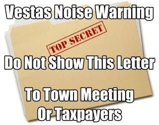 Town officials took a gamble and hid the Vestas warning letter from the public for almost six years. The letter warned of harmful noise from the wind turbine above and beyond the manufacturer specifications. Revealing the Vestas warning letter to the public would have alerted residential home owners to harm and danger from the wind turbine.