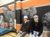 The event was held in the center's newly renovated gymnasium, and a detailed 10-foot high black and white mural depicting 18 renowned female athletes surrounded the group, providing a potentially inspiring backdrop. Artists Justin and Jordan Dubois were on hand to discuss their work.
